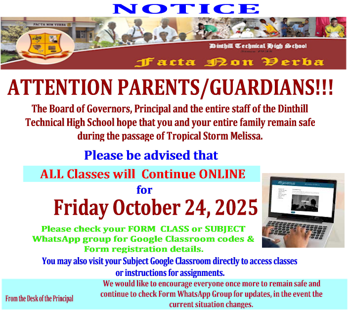 t secondary institutions in the rural areas, Dinthill Technical High School has been an integral part of the process of education in Jamaica. Over the eight decades Dinthill has been dedicated to its task of ably preparing students for their role as productive members of the Jamaican society and the wider world.